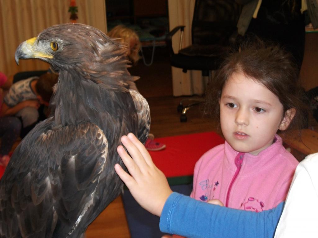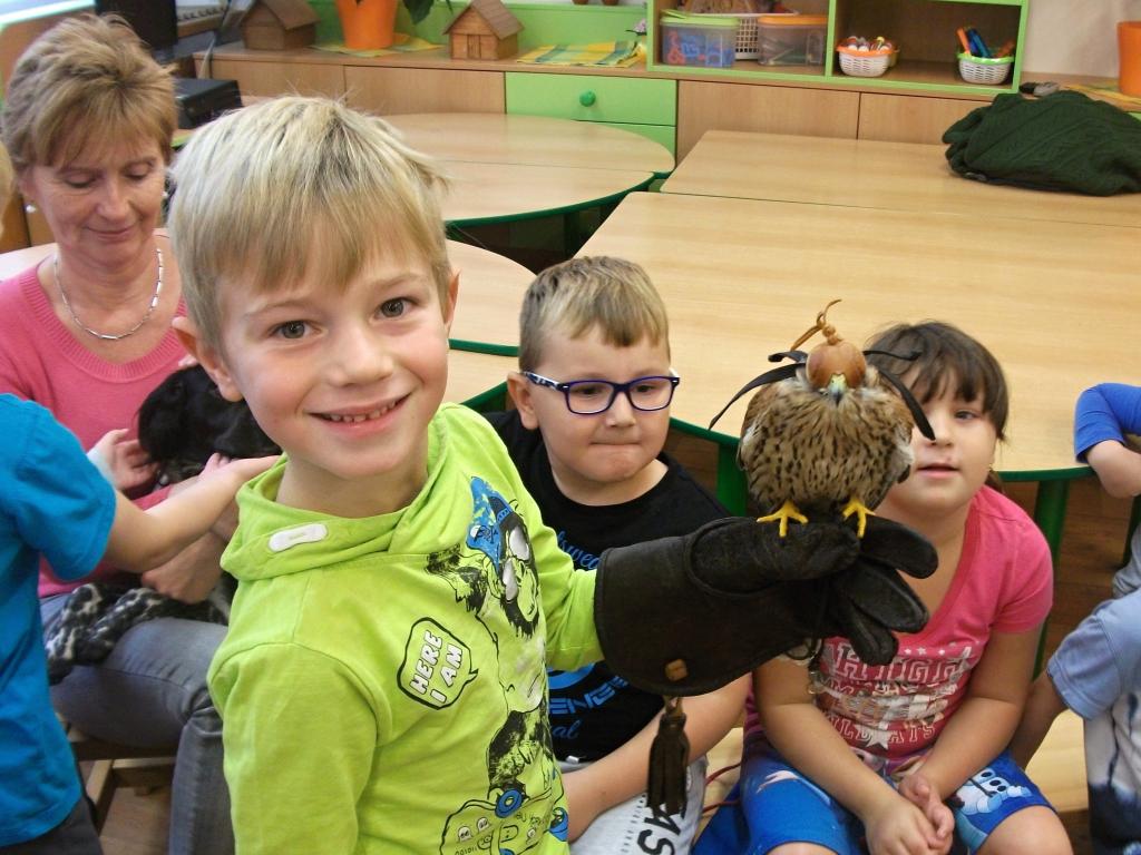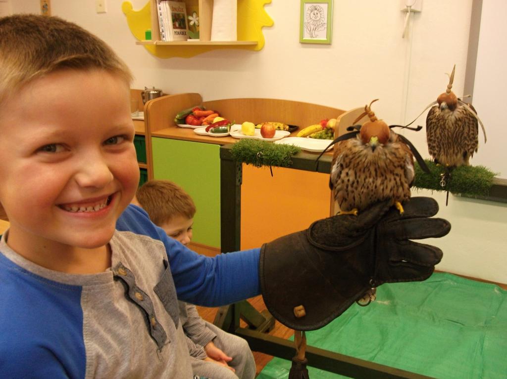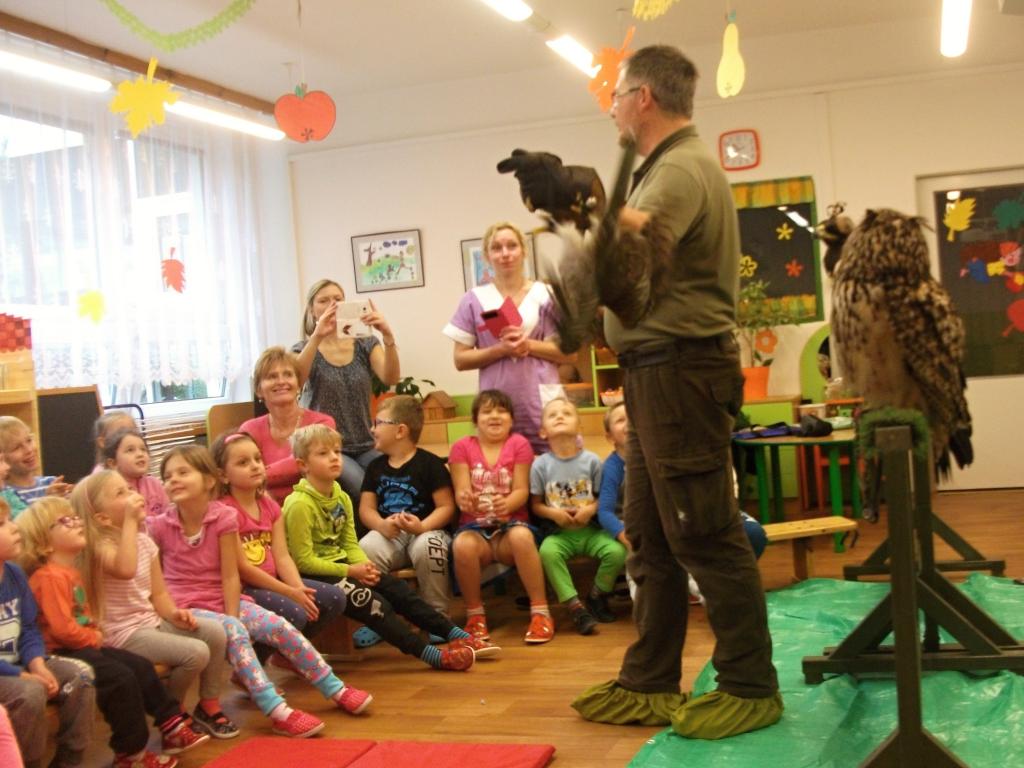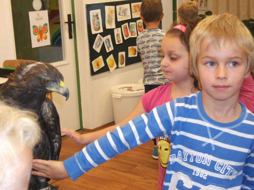 V naší školičce proběhla ukázka dravých ptáků. Děti se dozvěděly nové informace z ptačí říše a dokonce si mohly dravce pohladit a velice zblízka prohlédnout.