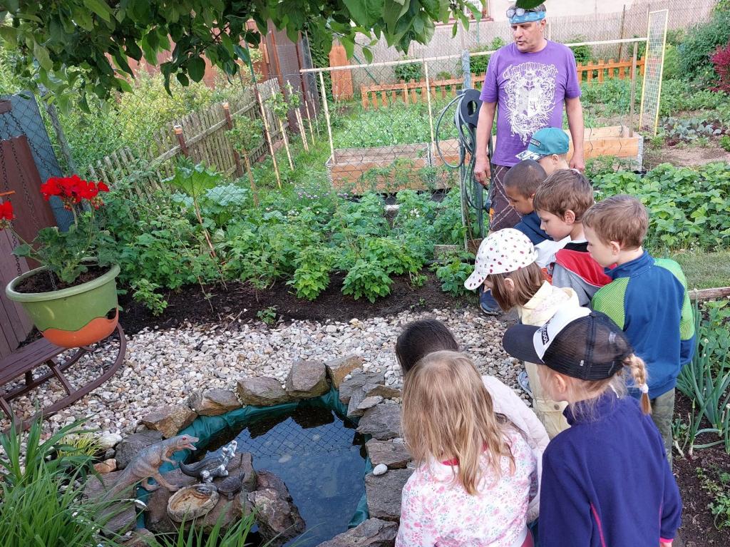Procházka s prohlídkou zahrady, králíčků – děti měly možnost prohlédnout si hospodářství místního chovatele králíků a morčat, viděly také jezírko s rybičkami a poslechly si krátké povídání, jak se o tato zvířátka pečuje.