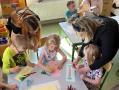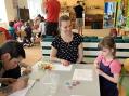 Svátek matek - v úterý 10.5. se sešly maminky a děti si pro ně připravily vystoupení ke Dni maminek. Pro každou maminku měly připravený dáreček a poté společně tvořily náramky, pískované obrázky a srdíčka.