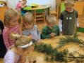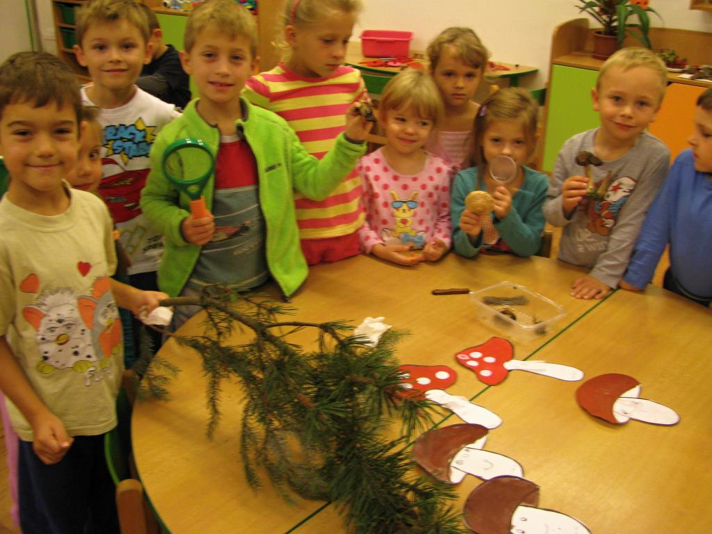 Starší děti ze třídy B - dolní si vybraly ke svému tvoření, zkoumání a experimentování téma podzimního lesa. Využily tradiční i netradiční materiály, činnosti doplnily sběrem kaštanů a žaludů pro zvířátka.